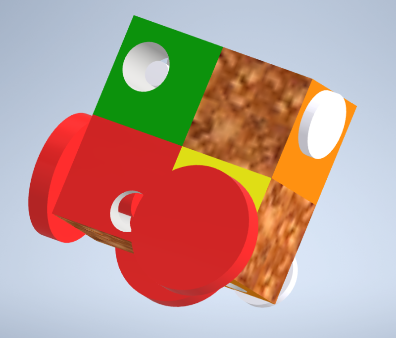 Hier ziet u een 25mm blok met paar kleuren en texures. Vervolgens zijn er 3 extra gepakt en heb ik ze op elkaar geplakt. Dan heb ik twee soorten assen gemaakt die door de gaten van het figuur gaan.