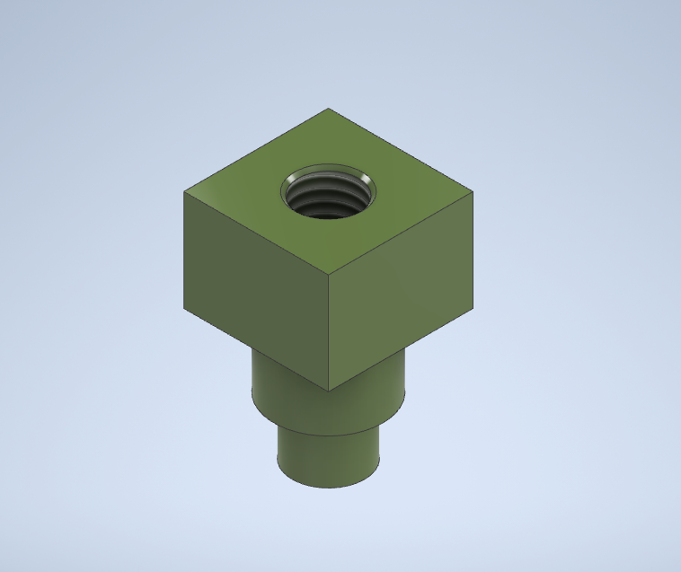 Hier heb ik een 3D model gemaakt. Met dit model hebben we de functies in Inventor herhaalt van de vorige opdrachten en hebben we meer schroefdraden toegepast om daarmee te oefenen.