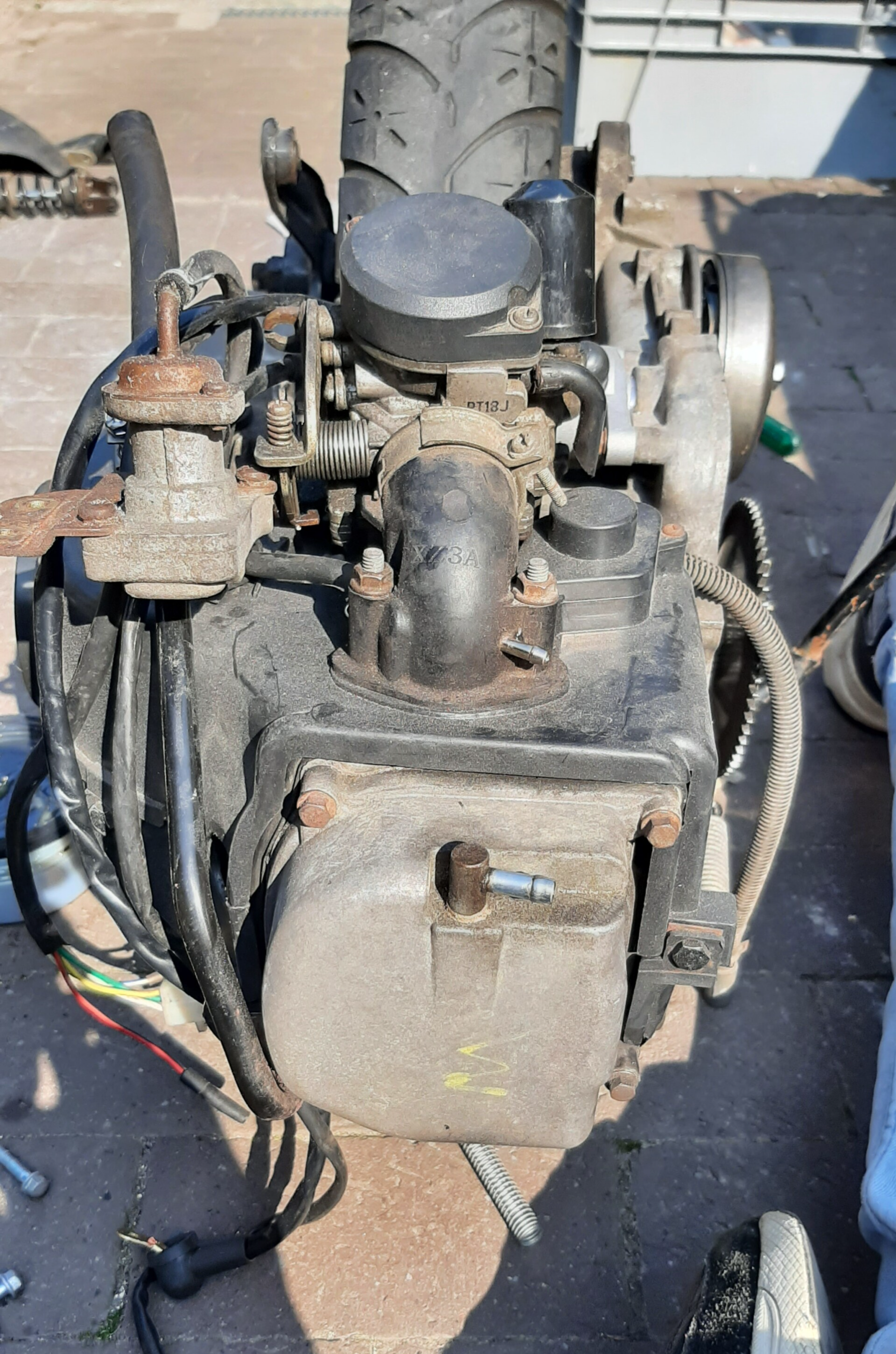 Maar wat moet ik dan doen? Scooter weg of het blok controleren. Ik ging eerst voor het tweede. Dus de lagers en een nieuwe cilinderkop met zuiger. Ik wou graag een 90cc erop zetten voor meer trekkracht. Vervolgens wou ik er injectie op zetten voor een lagere brandstofgebruik. Dit leek me ideaal voor de lange afstanden naar school. Me vader kwam op een gegeven moment met het idee dat mijn oom namelijk een chinees retro scooter model heeft en die wordt toch niet meer gebruikt. Hij deed er niks mee dus nagevraagd en mocht ik het blok van hem overnemen. Die had 3500km gelopen dus vrij nieuw. Mijn scooter had ook namelijk 9300km gelopen. Dus het kwam toch wel goed uit. Dit waren bijna dezelfde blokken. Alleen de motorcode was iets anders, namelijk bn139qmb. Maar het past allemaal wel.
